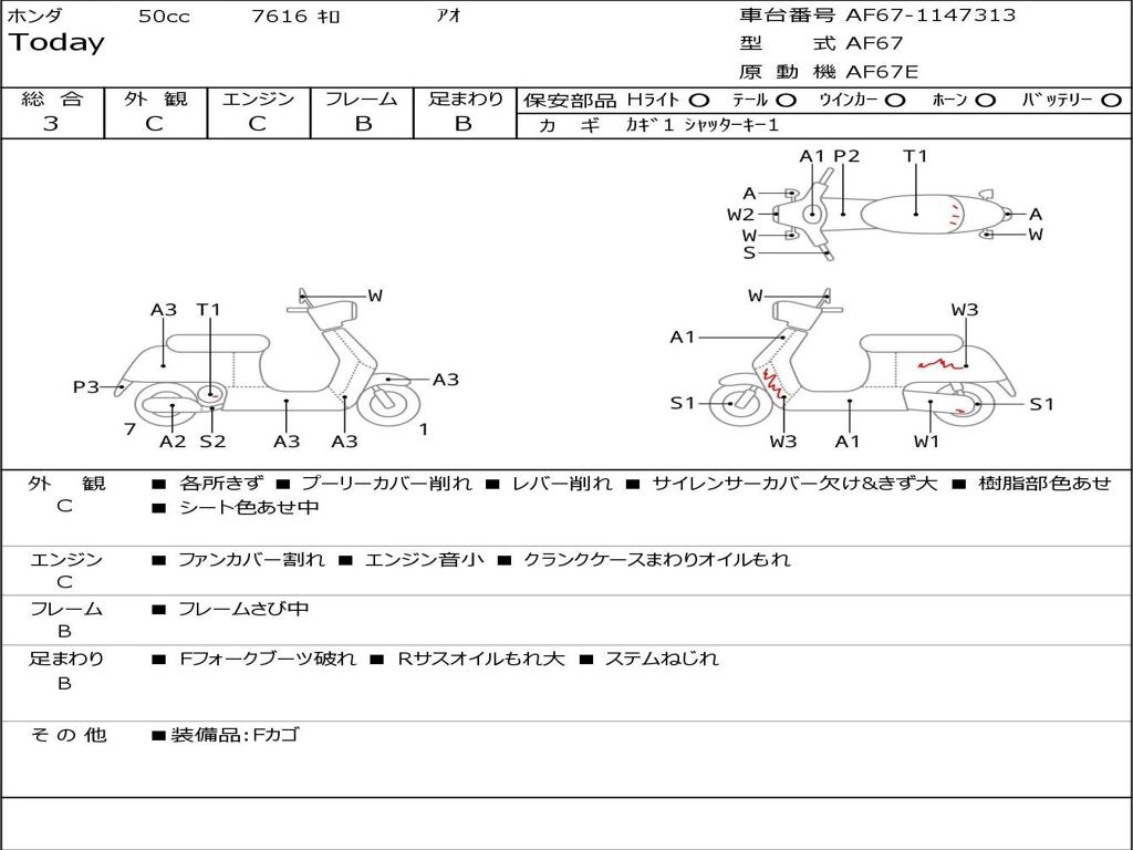 | Номер рамы / VIN | AF67-1147313 |