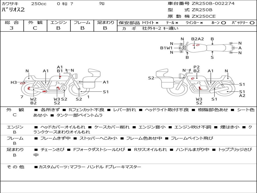 | Номер рамы / VIN | ZR250B-002274 |