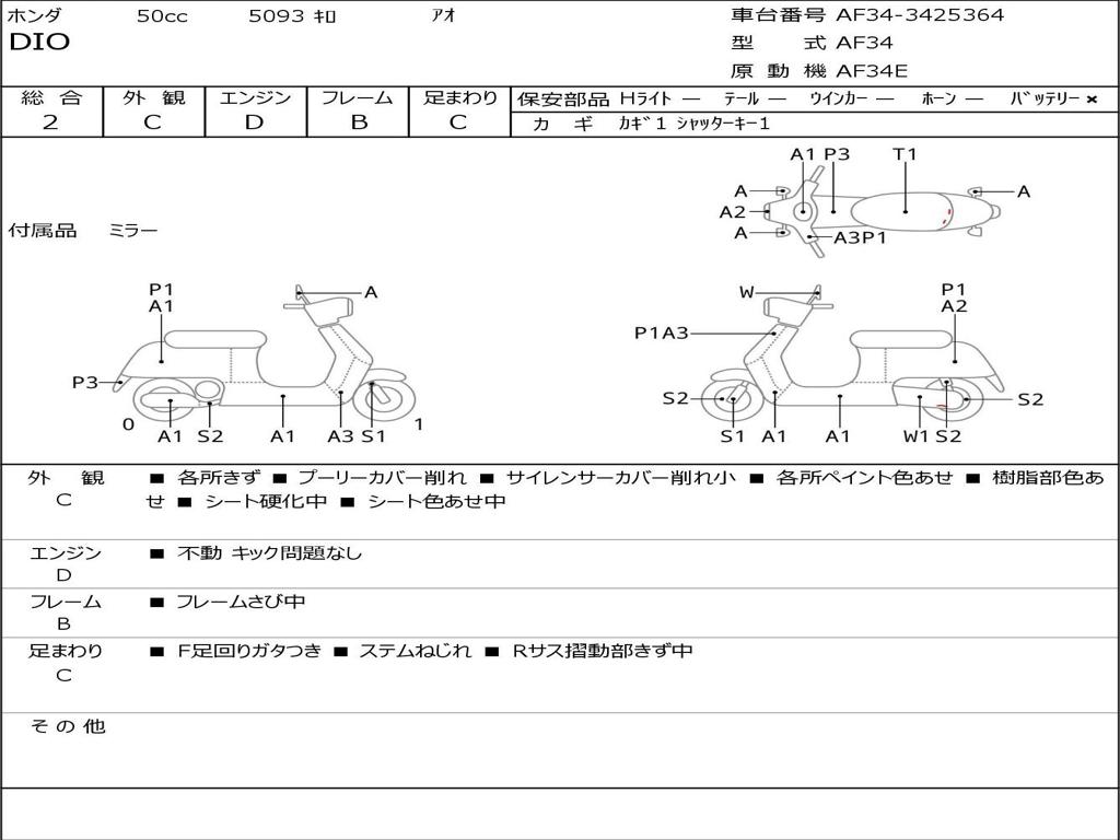| Номер рамы / VIN | AF34-3425364 |