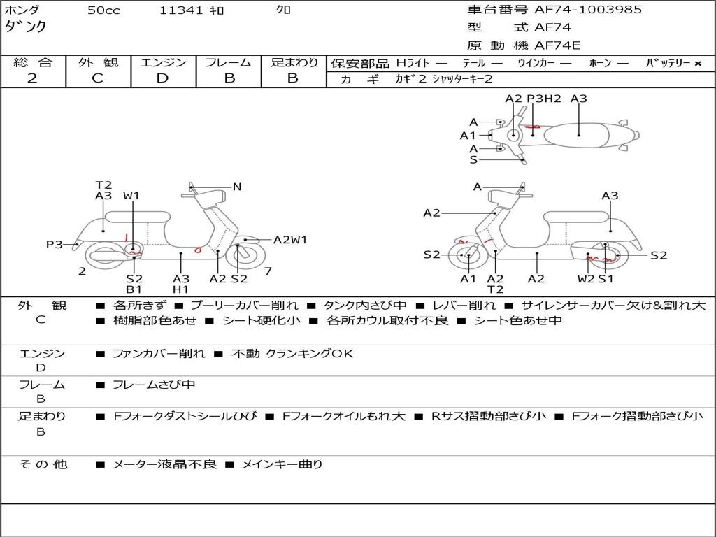 | Номер рамы / VIN | AF74-1003985 |