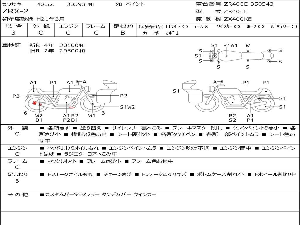 | Номер рамы / VIN | ZR400E-350543 |