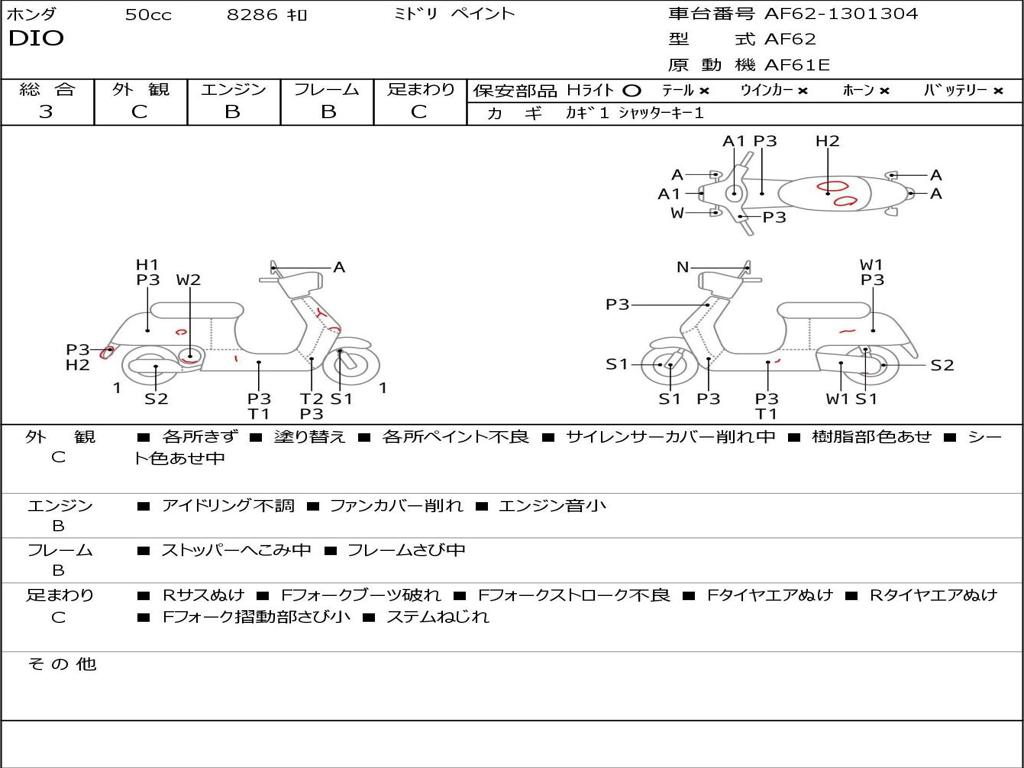 | Номер рамы / VIN | AF62-1301304 |