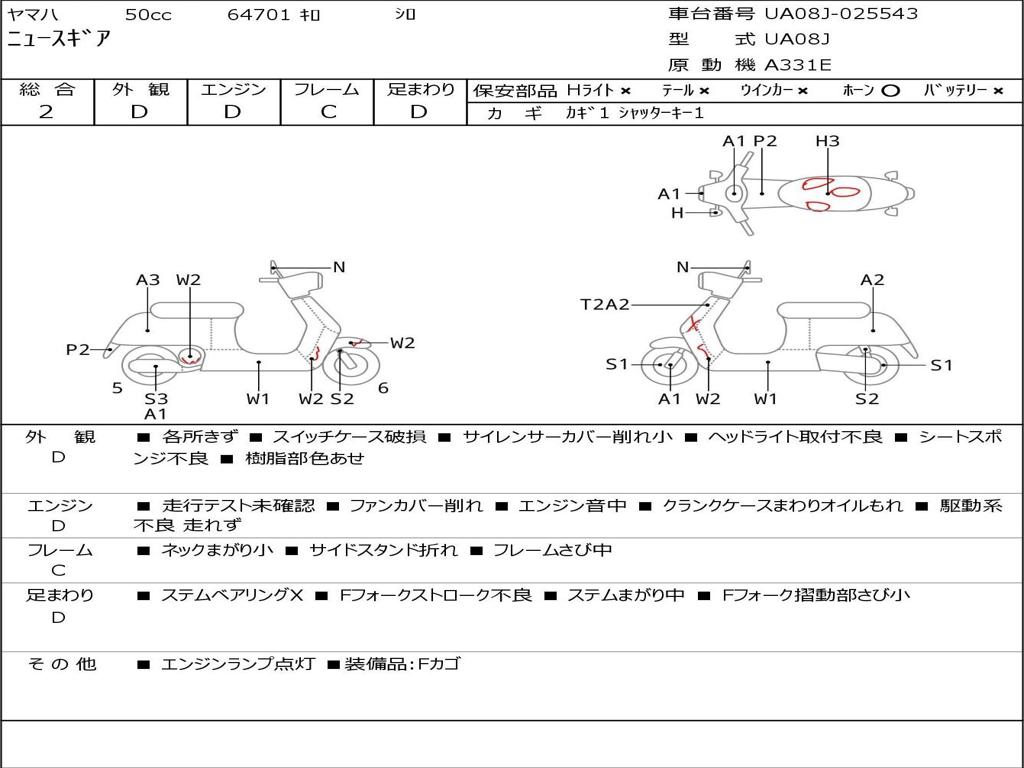 | Номер рамы / VIN | UA08J-025543 |