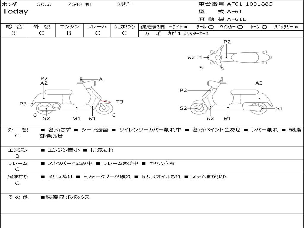 | Номер рамы / VIN | AF61-1001885 |