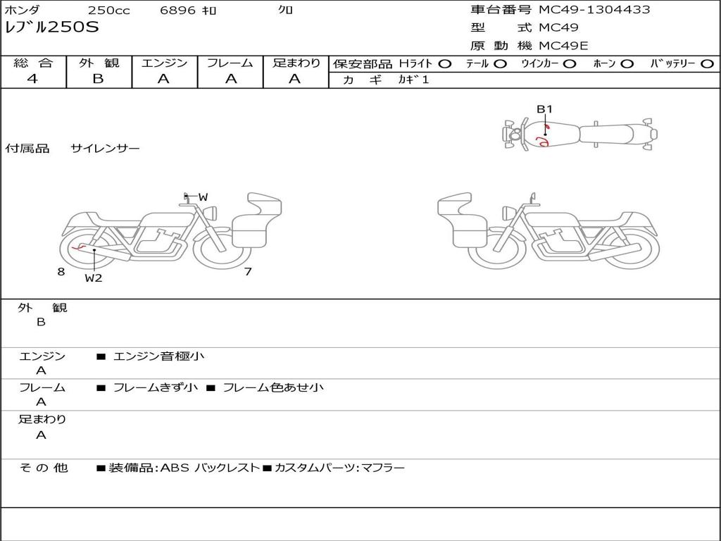 | Номер рамы / VIN | MC49-1304433 |