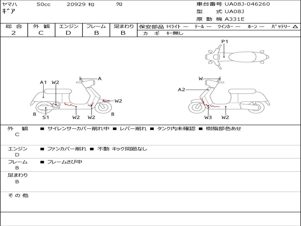 | Номер рамы / VIN | UA08J-046260 |