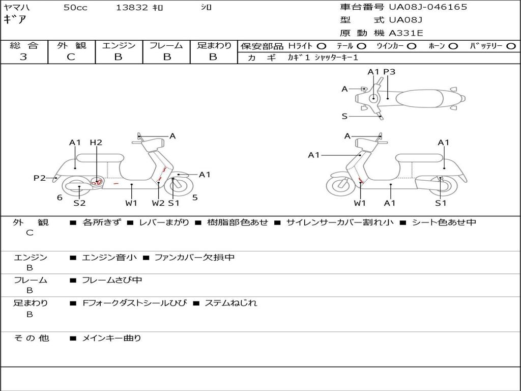 | Номер рамы / VIN | UA08J-046165 |
