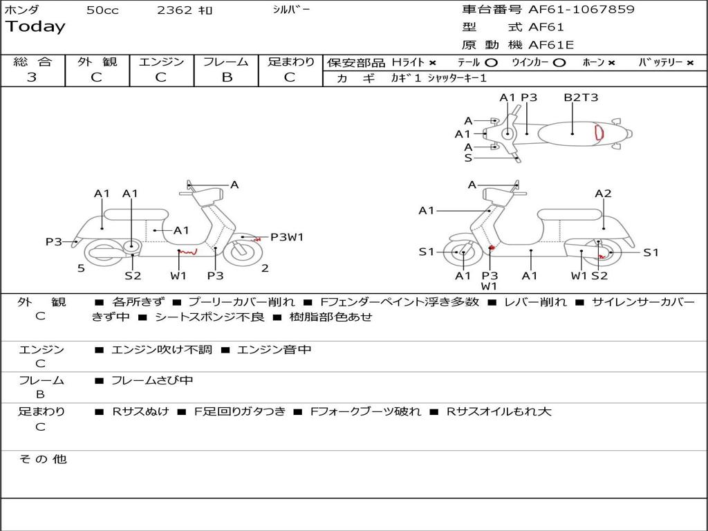 | Номер рамы / VIN | AF61-1067859 |