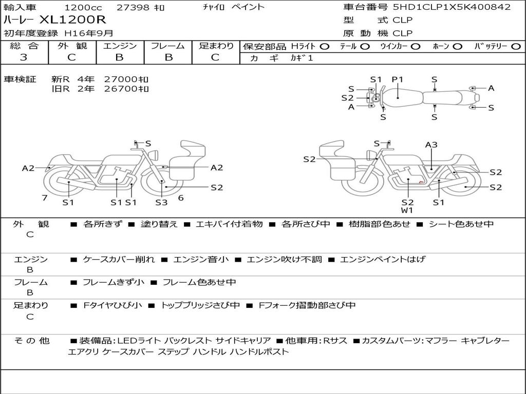 | Номер рамы / VIN | 5HD1CLP1X5K400842 |