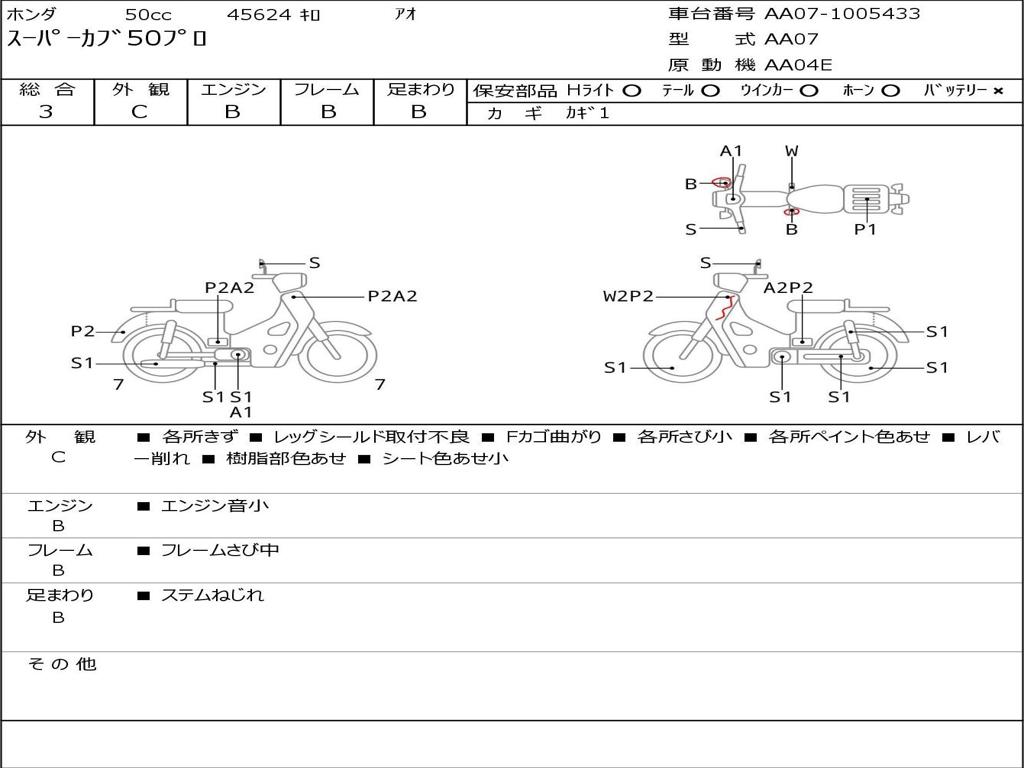 | Номер рамы / VIN | AA07-1005433 |