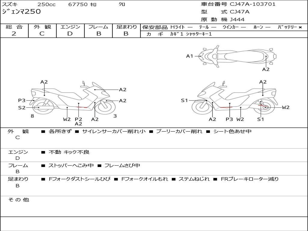 | Номер рамы / VIN | CJ47A-103701 |