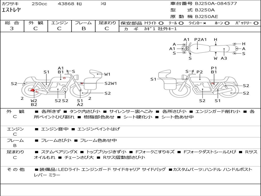 | Номер рамы / VIN | BJ250A-084577 |