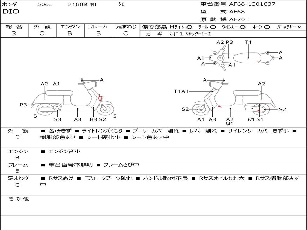 | Номер рамы / VIN | AF68-1301637 |