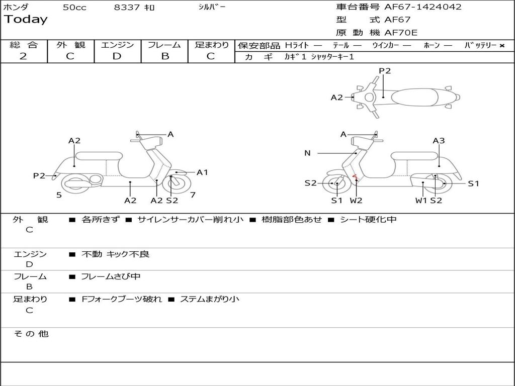 | Номер рамы / VIN | AF67-1424042 |