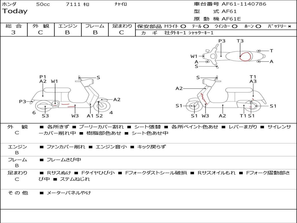 | Номер рамы / VIN | AF61-1140786 |