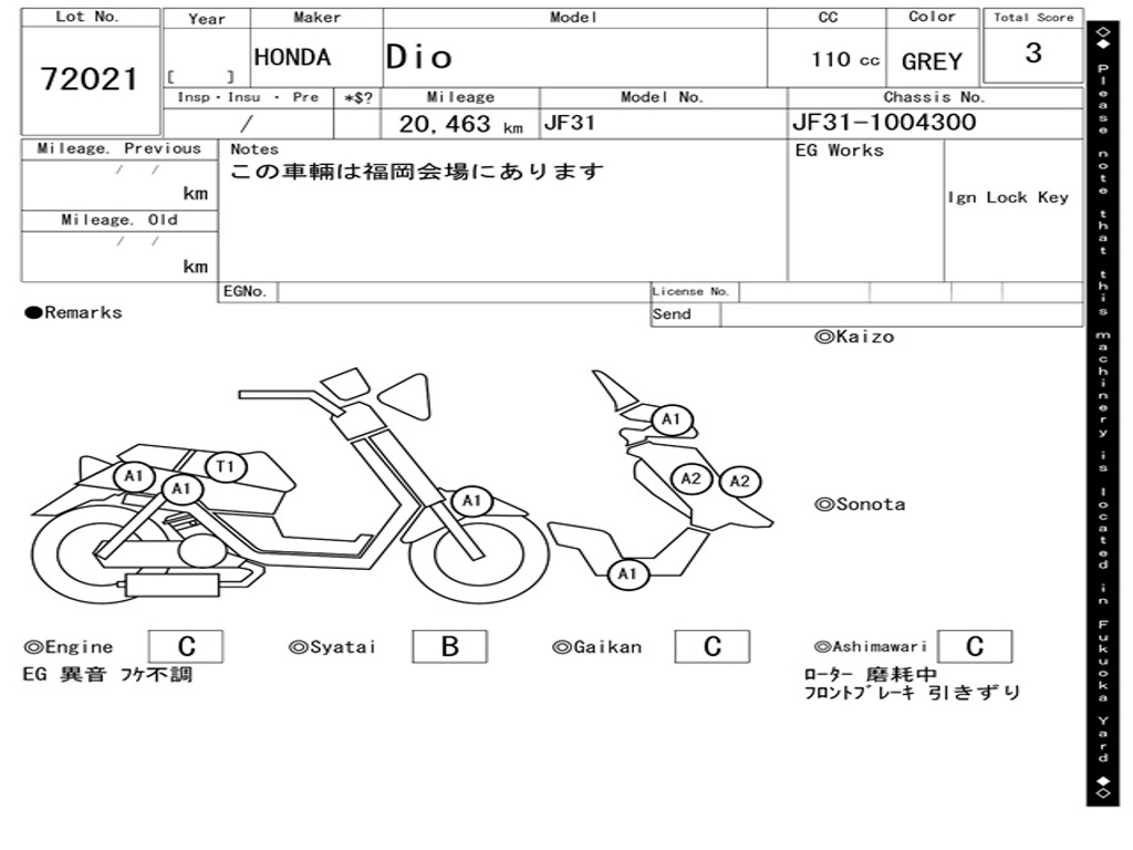 | Номер рамы / VIN | JF31-1004300 |