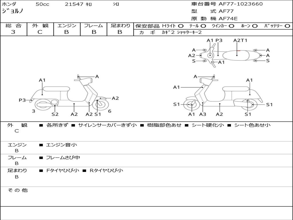 | Номер рамы / VIN | AF77-1023660 |