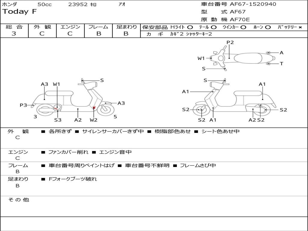 | Номер рамы / VIN | AF67-1520940 |