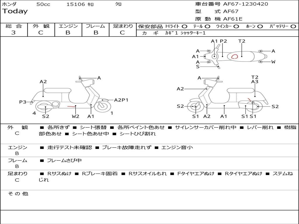 | Номер рамы / VIN | AF67-1230420 |