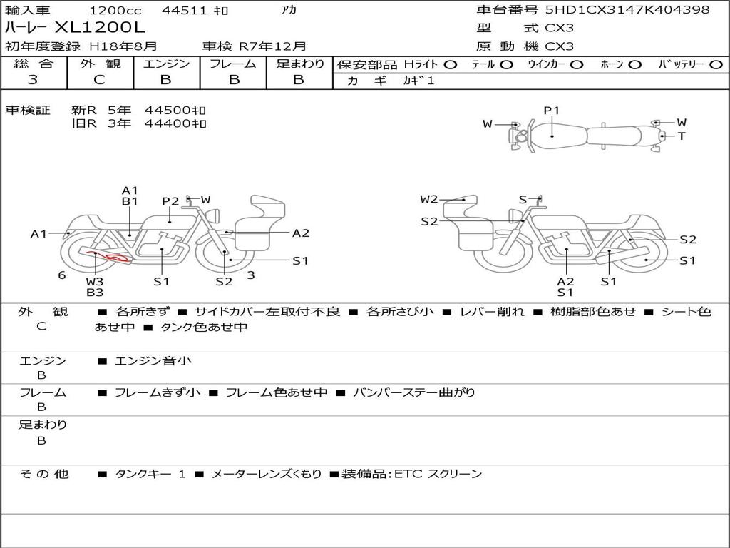 | Номер рамы / VIN | 5HD1CX3147K404398 |