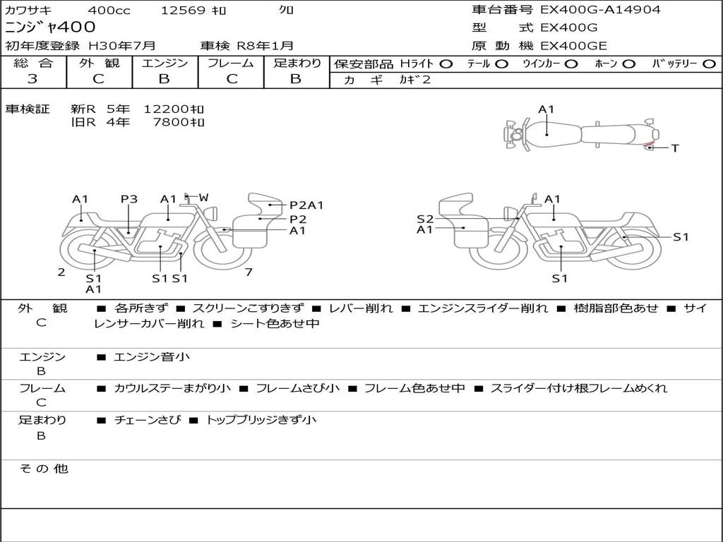 | Номер рамы / VIN | EX400G-A14904 |