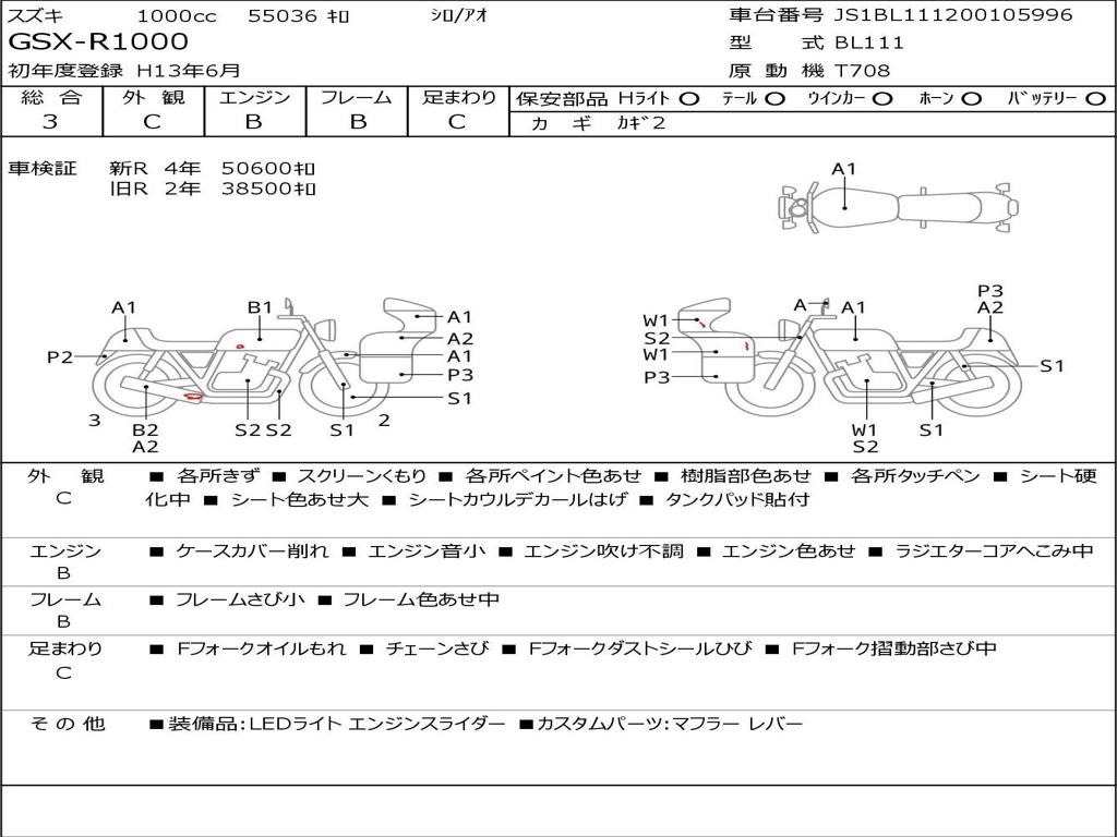 | Номер рамы / VIN | JS1BL111200105996 |
