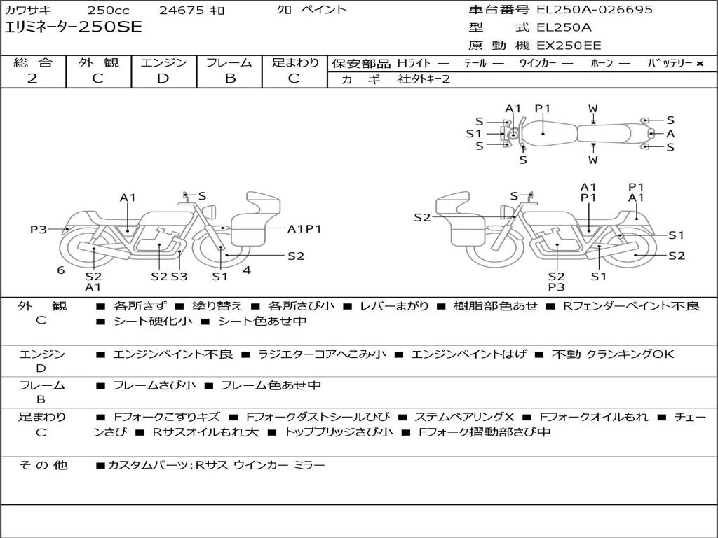 | Номер рамы / VIN | EL250A-026695 |
