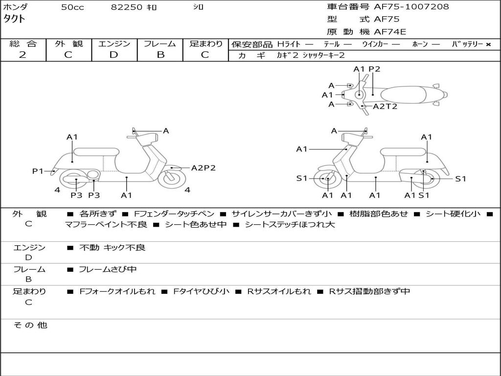 | Номер рамы / VIN | AF75-1007208 |