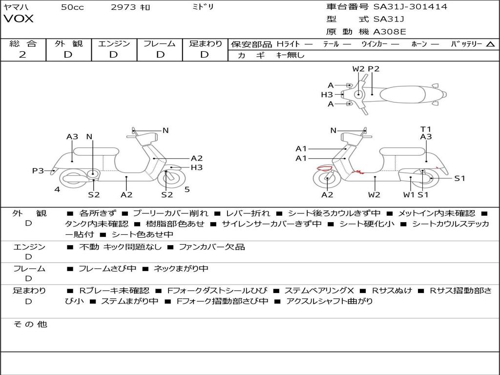 | Номер рамы / VIN | SA31J-301414 |