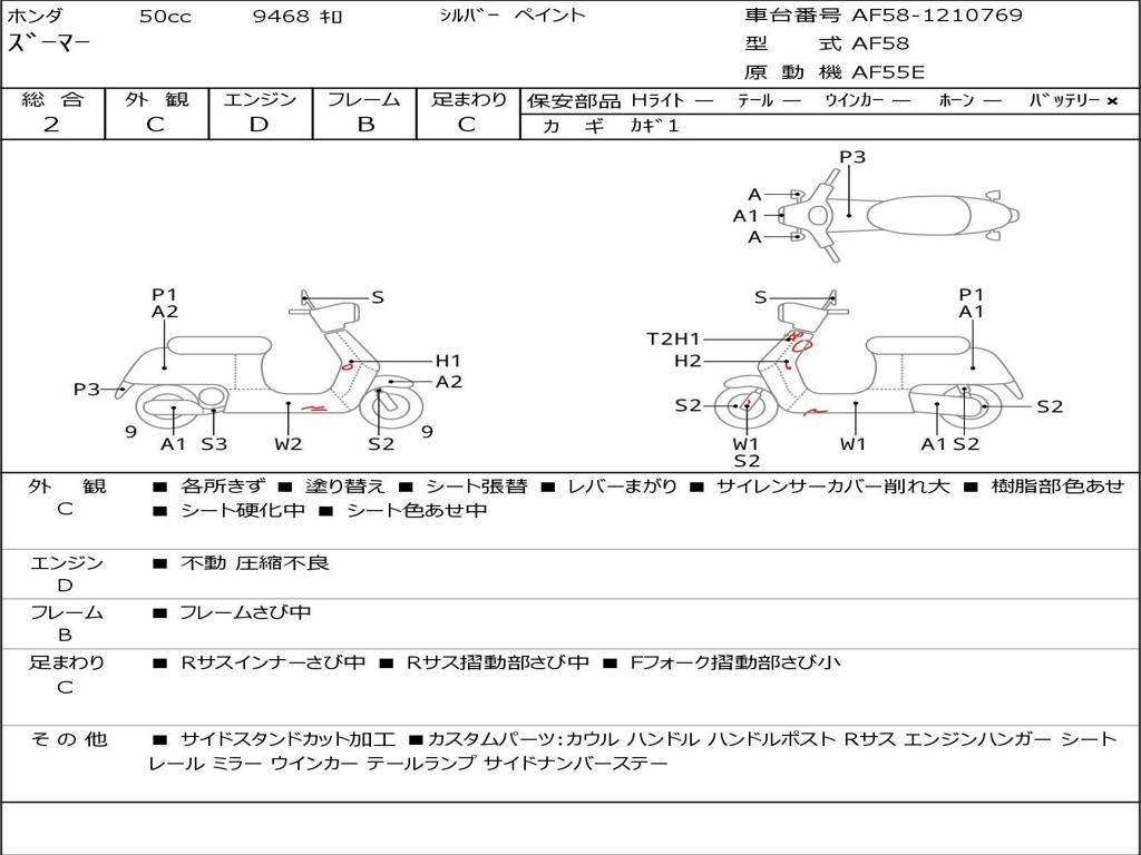 | Номер рамы / VIN | AF58-1210769 |