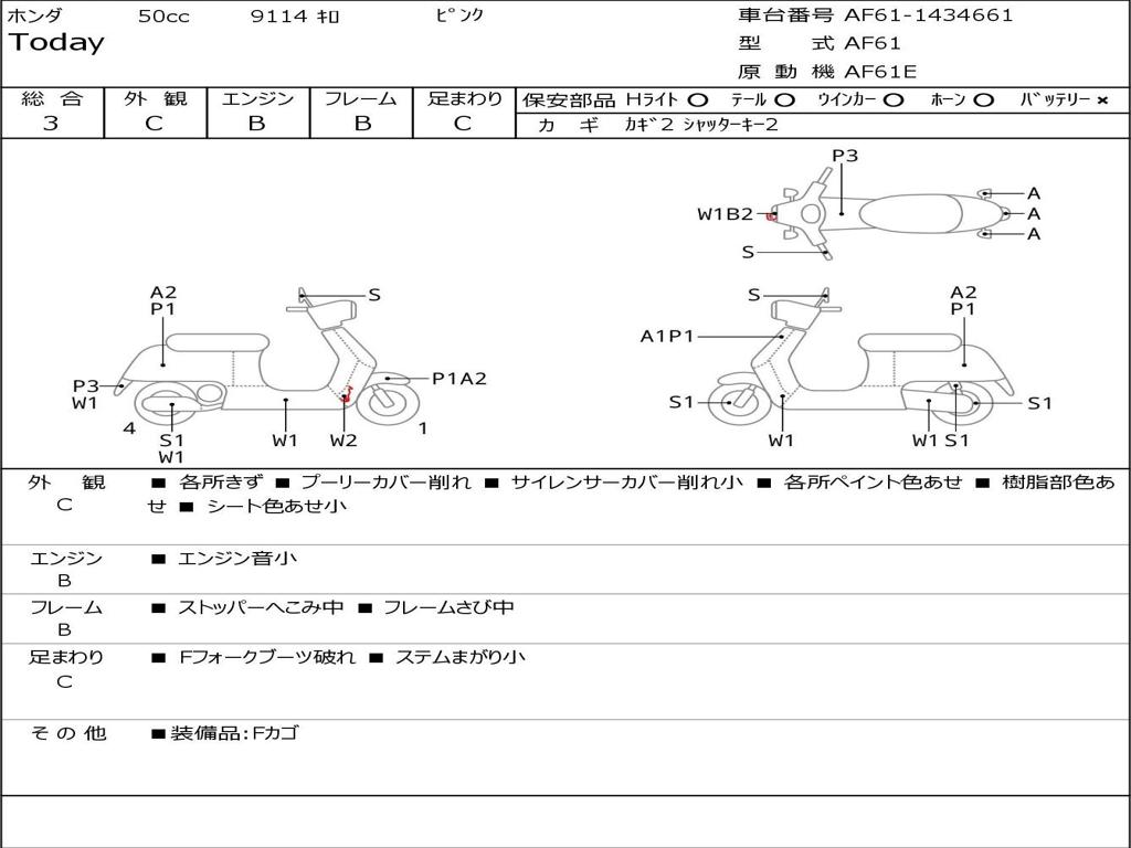 | Номер рамы / VIN | AF61-1434661 |