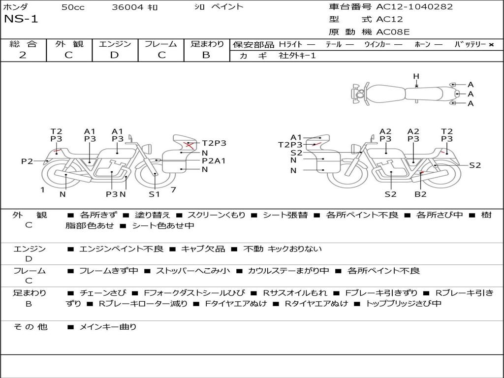 | Номер рамы / VIN | AC12-1040282 |