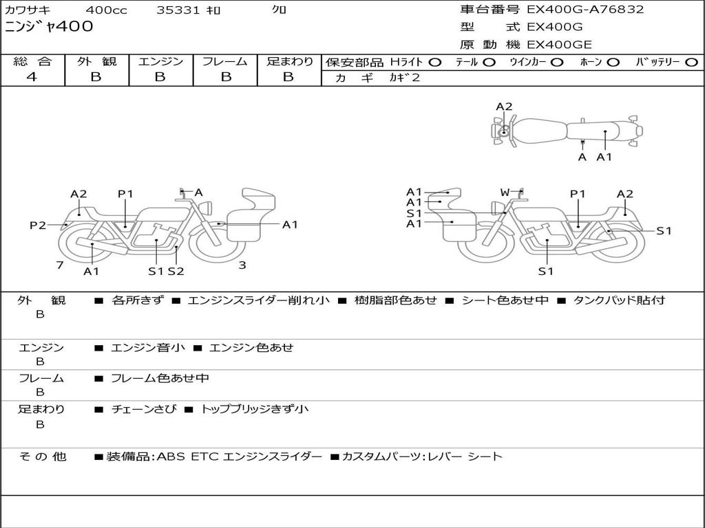 | Номер рамы / VIN | EX400G-A76832 |