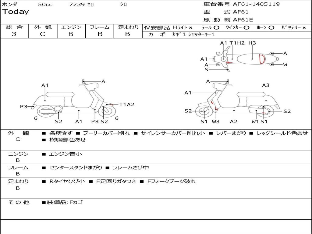 | Номер рамы / VIN | AF61-1405119 |