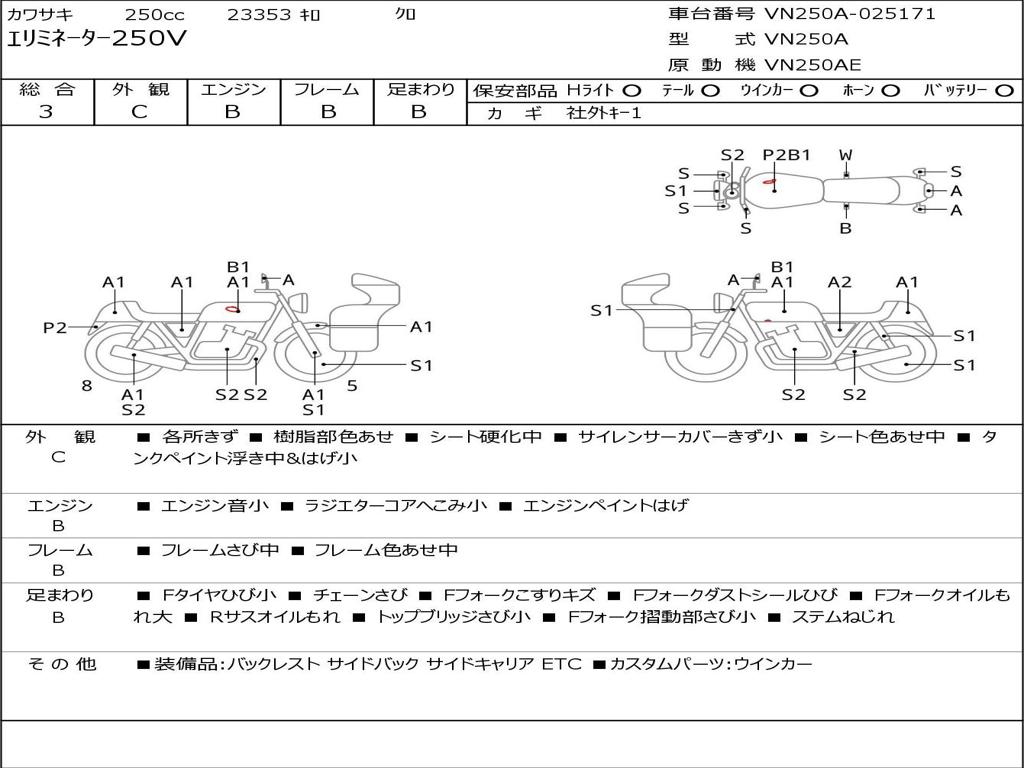| Номер рамы / VIN | VN250A-025171 |