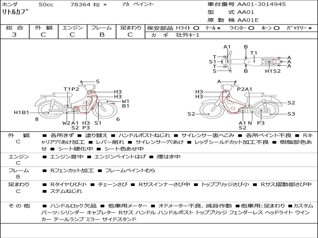 | Номер рамы / VIN | AA01-3014945 |