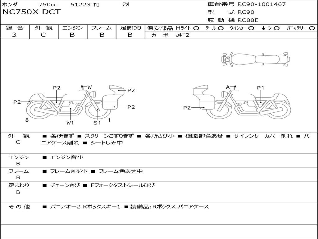 | Номер рамы / VIN | RC90-1001467 |