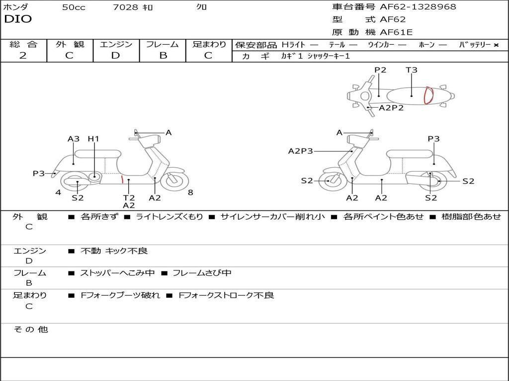 | Номер рамы / VIN | AF62-1328968 |