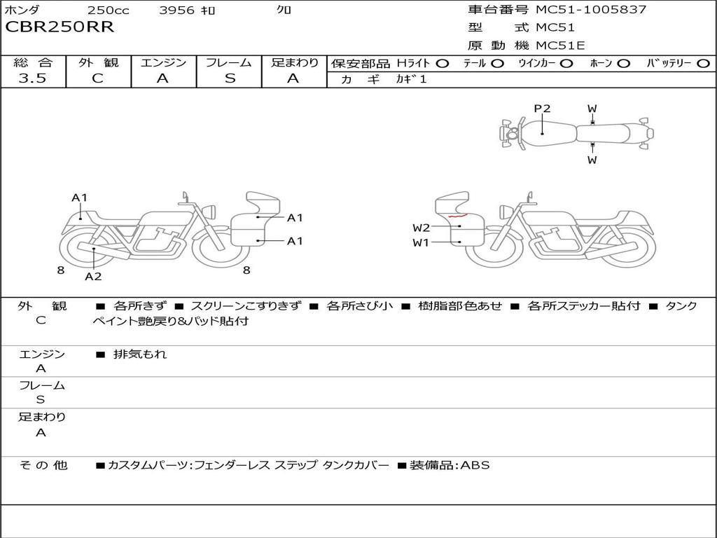 | Номер рамы / VIN | MC51-1005837 |