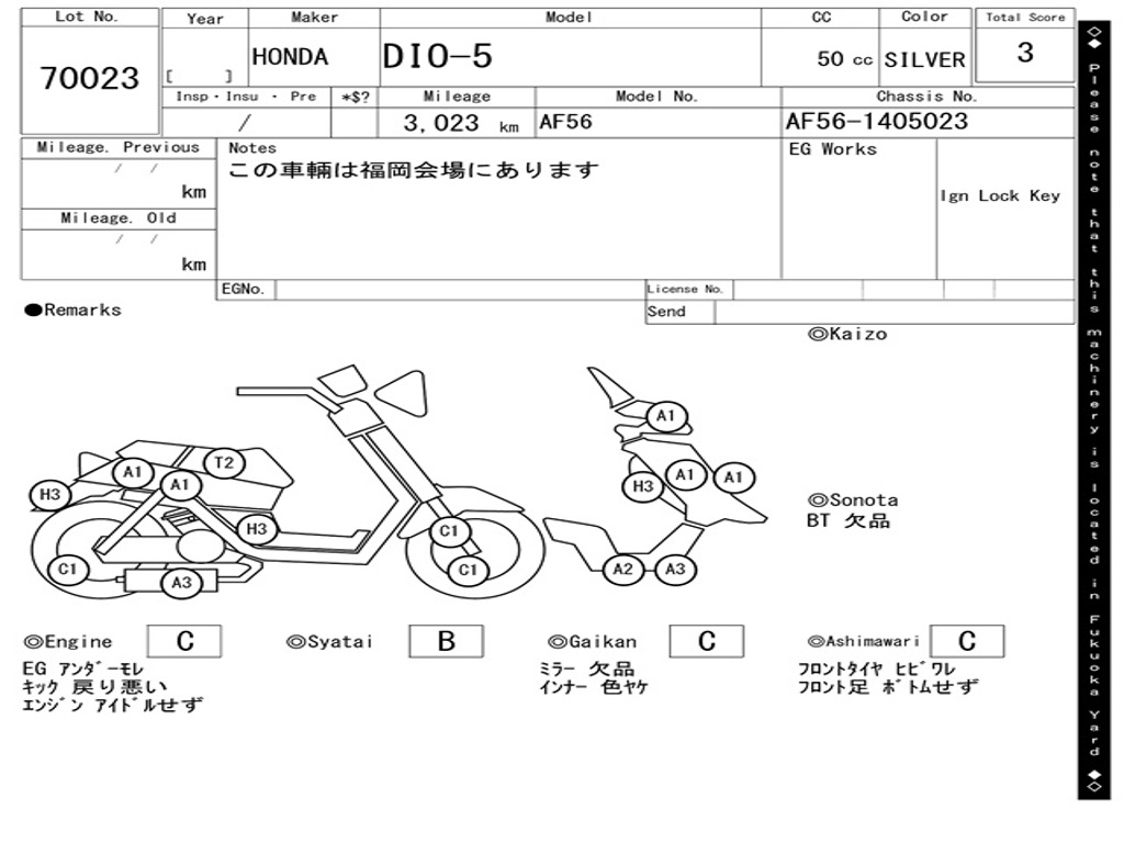 | Номер рамы / VIN | AF56-1003023 |