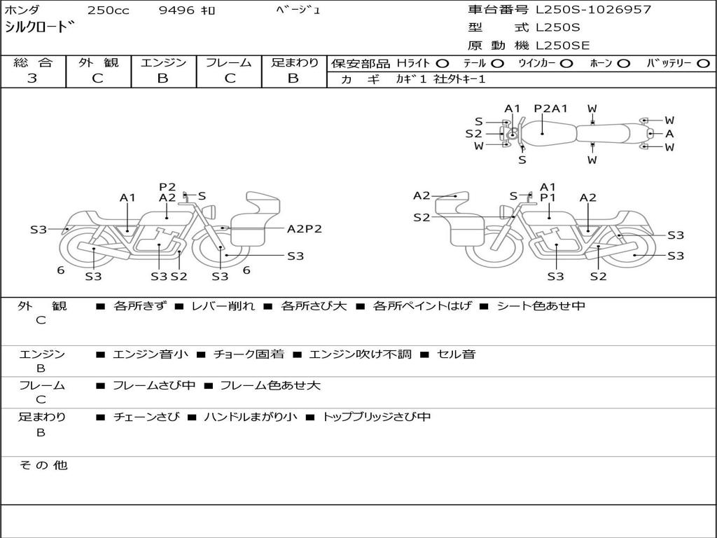 | Номер рамы / VIN | L250S-1026957 |