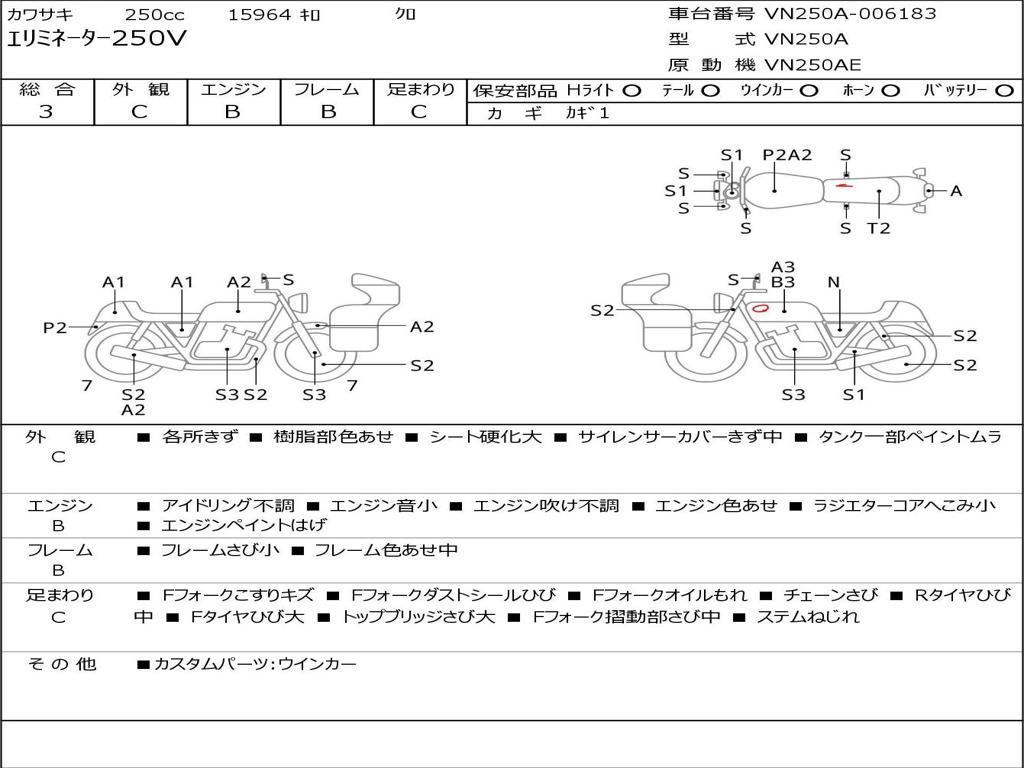 | Номер рамы / VIN | VN250A-006183 |
