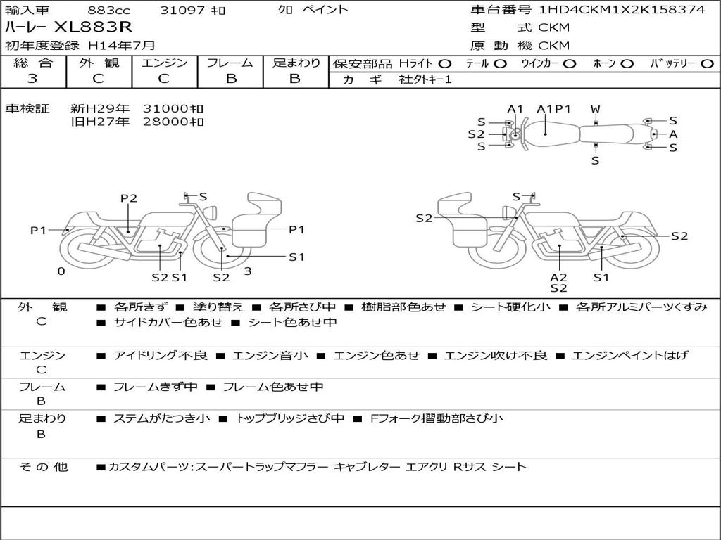 | Номер рамы / VIN | 1HD4CKM1X2K158374 |