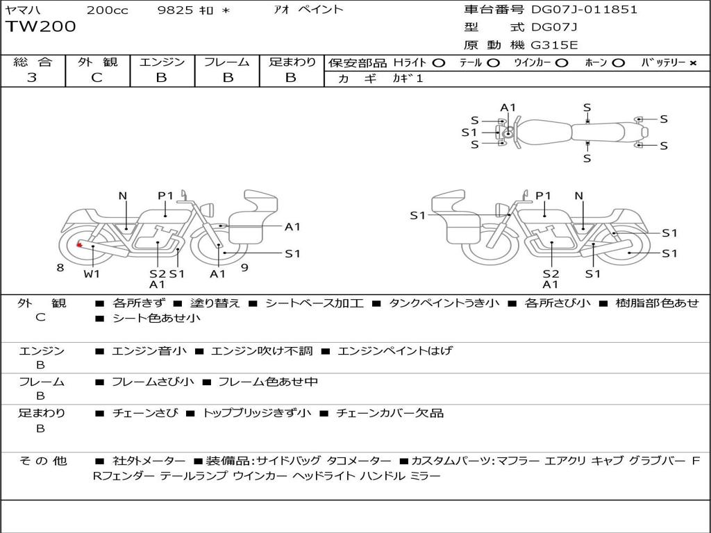 | Номер рамы / VIN | DG07J-011851 |
