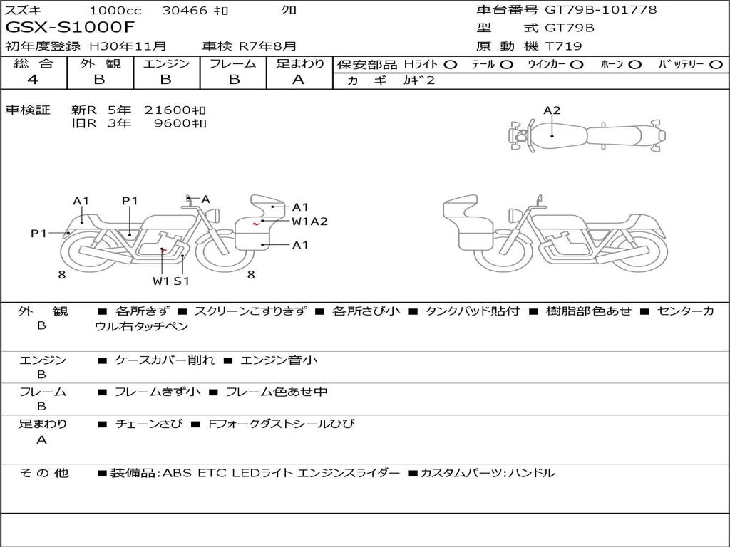 | Номер рамы / VIN | GT79B-101778 |