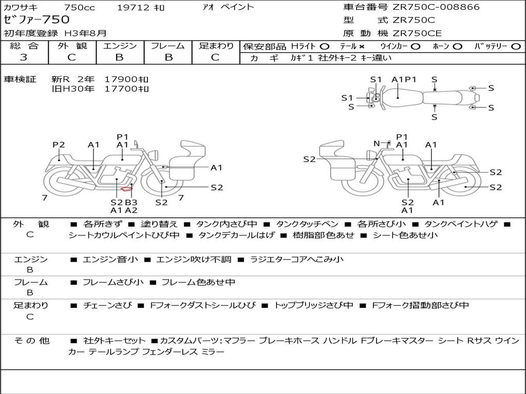 | Номер рамы / VIN | ZR750C-008866 |