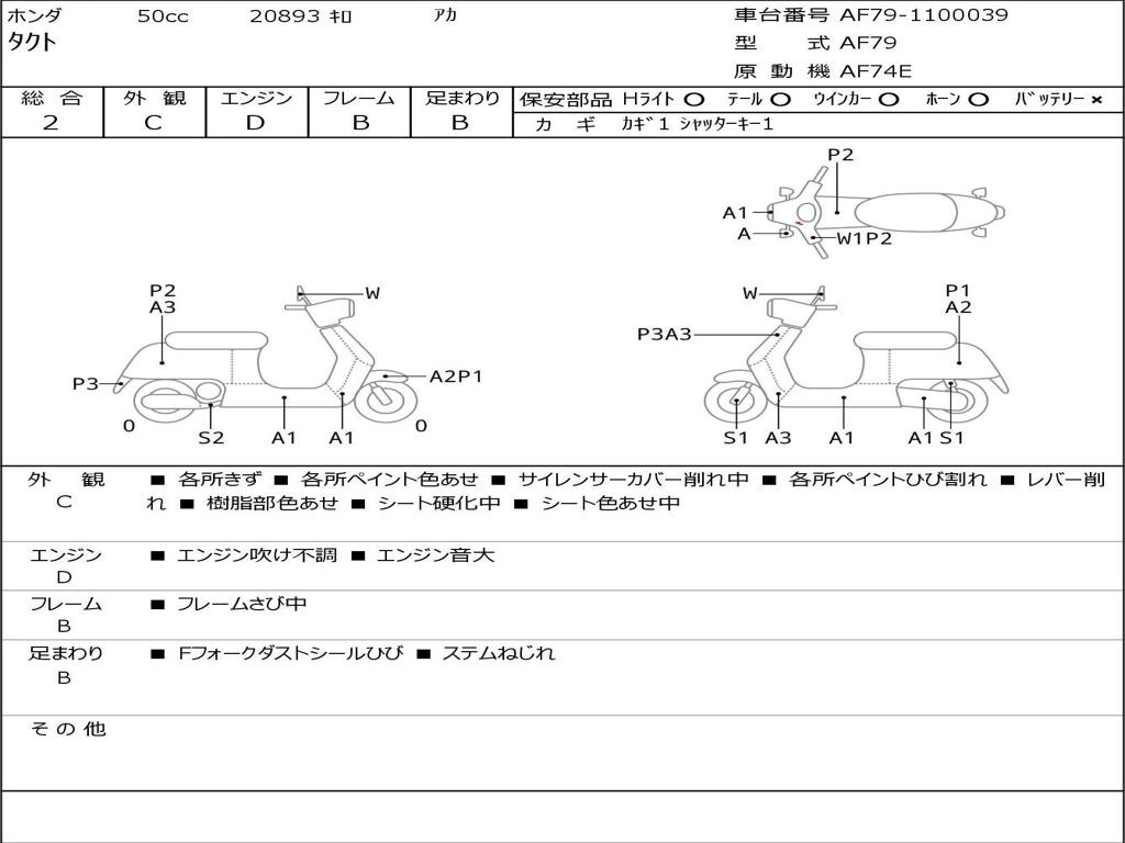 | Номер рамы / VIN | AF79-1100039 |