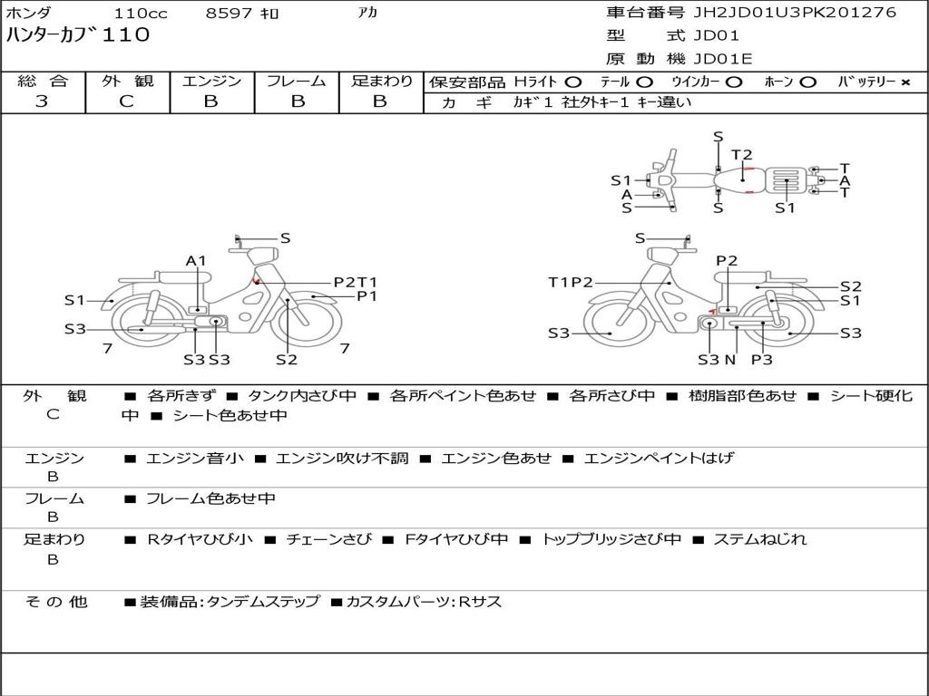 | Номер рамы / VIN | JH2JD01U3PK201276 |