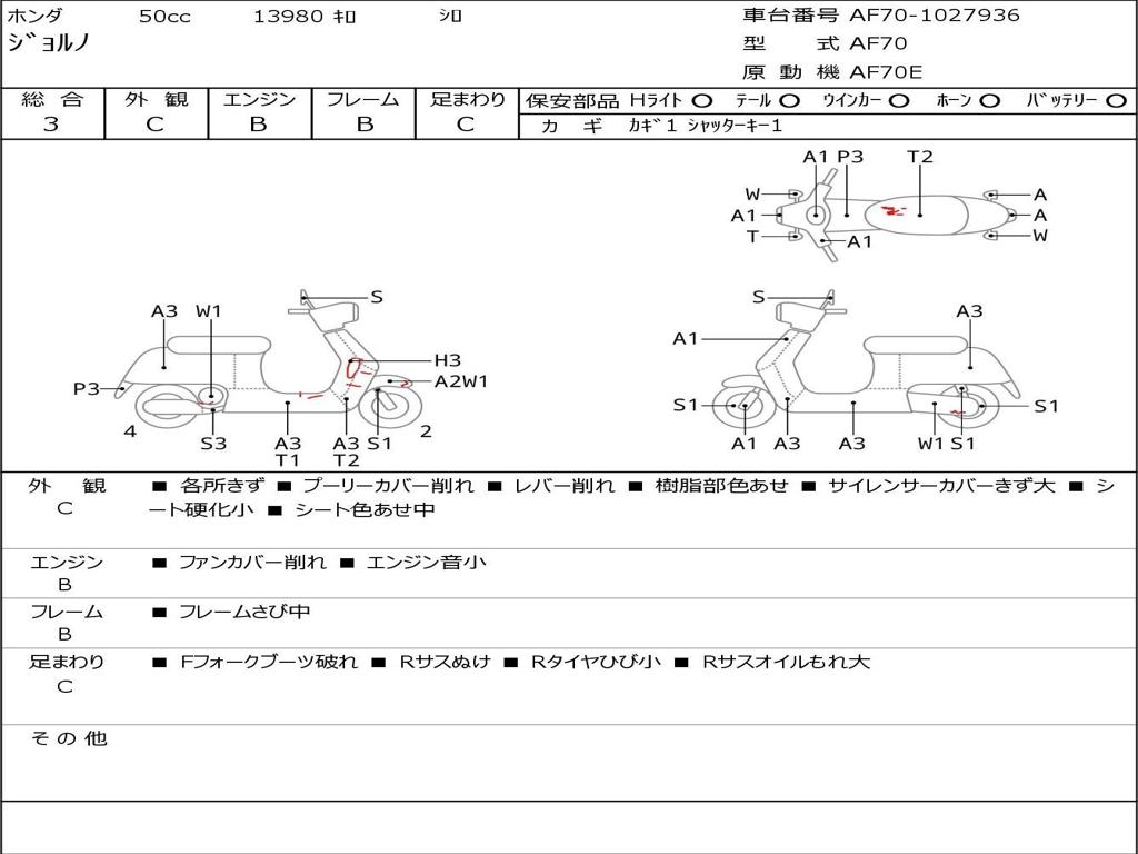 | Номер рамы / VIN | AF70-1027936 |