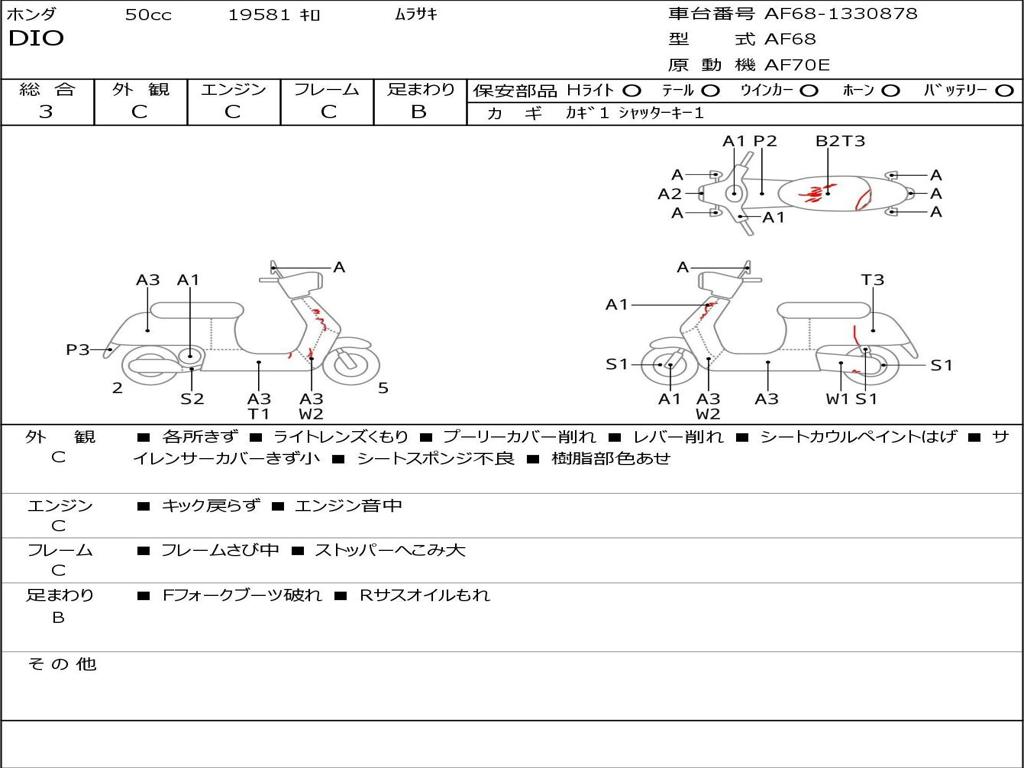 | Номер рамы / VIN | AF68-1330878 |
